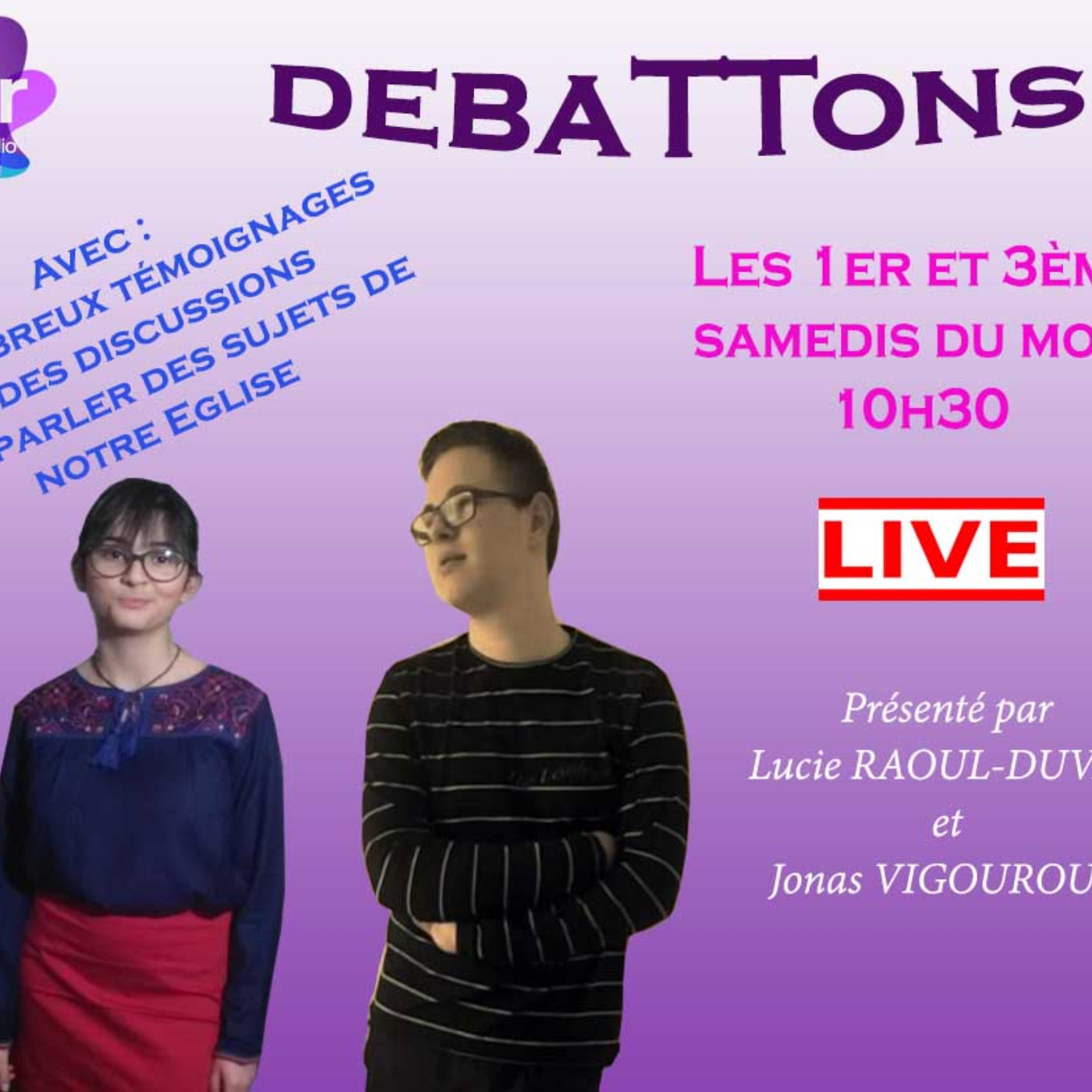 Entre témoignages, discussions et reflexions. Rendez-vous pour 1h30 tous ensemble les 1er et 3ème samedi du mois en Direct